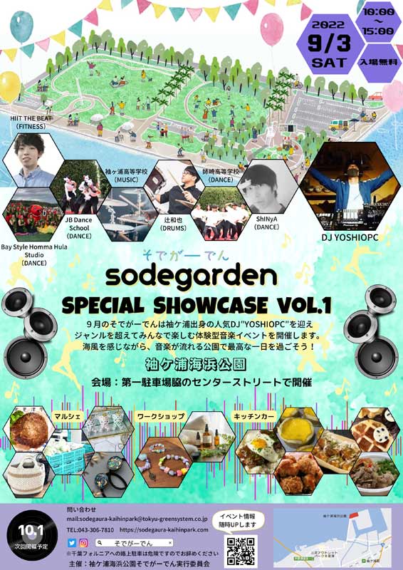 ★そでがーでんSPECIAL SHOWCASE-1★ 開催日:2022年9月3日(土) 会場:【袖ケ浦海浜公園】第一駐車場脇センターストリート J-Brandダンスステージ:12:00〜予定 入場料:無料 袖ケ浦海浜公園HPイベントページ