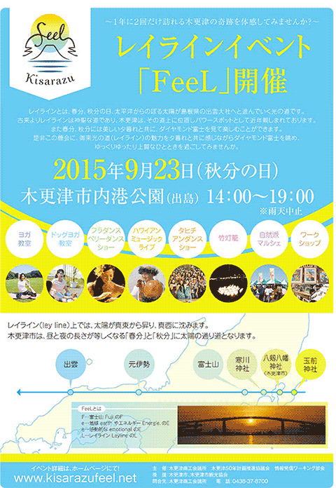 今月23日秋分の日に、木更津港公園(通称:出島)でレイラインイベント「FeeL」が開催! メインステージでJ-Brand dance schoolのキッズダンスチームが出演、ヨガステージプログラムで Yogaとdanceレッスンを行います。